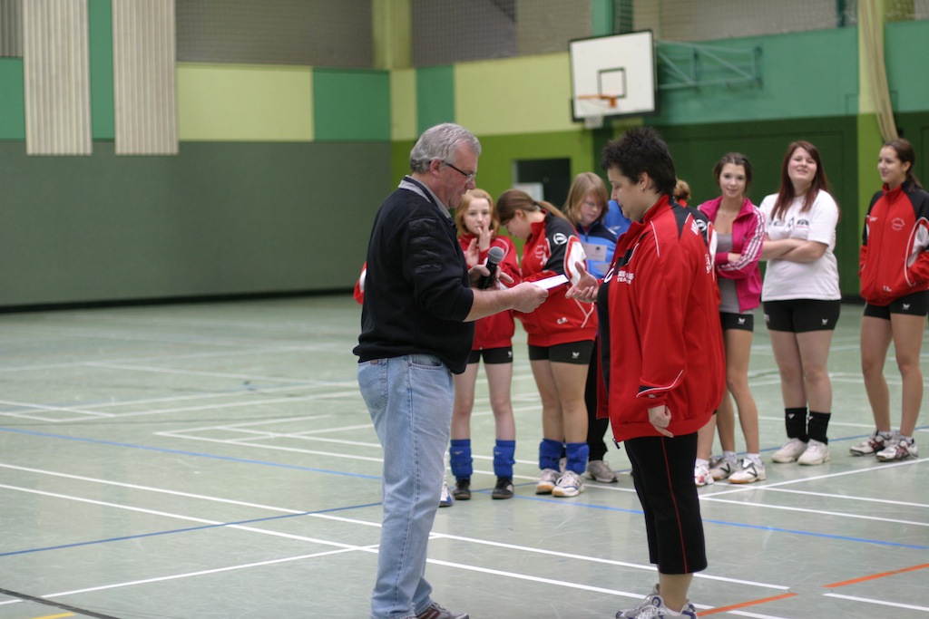 H. Halbe nimmt die Unterlagen zur bestandenen Schiedsrichterausbildung entgegen