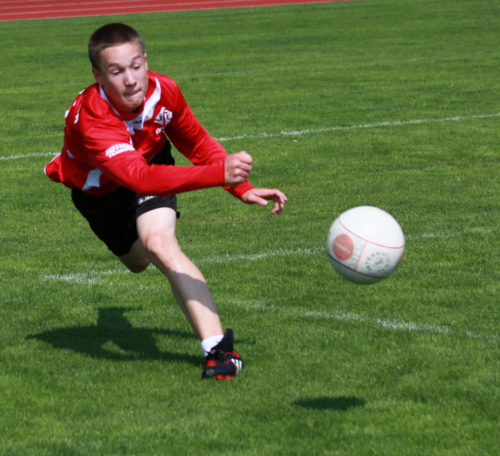 Lukas Halbe "kratzt" einen Ball vom Boden
