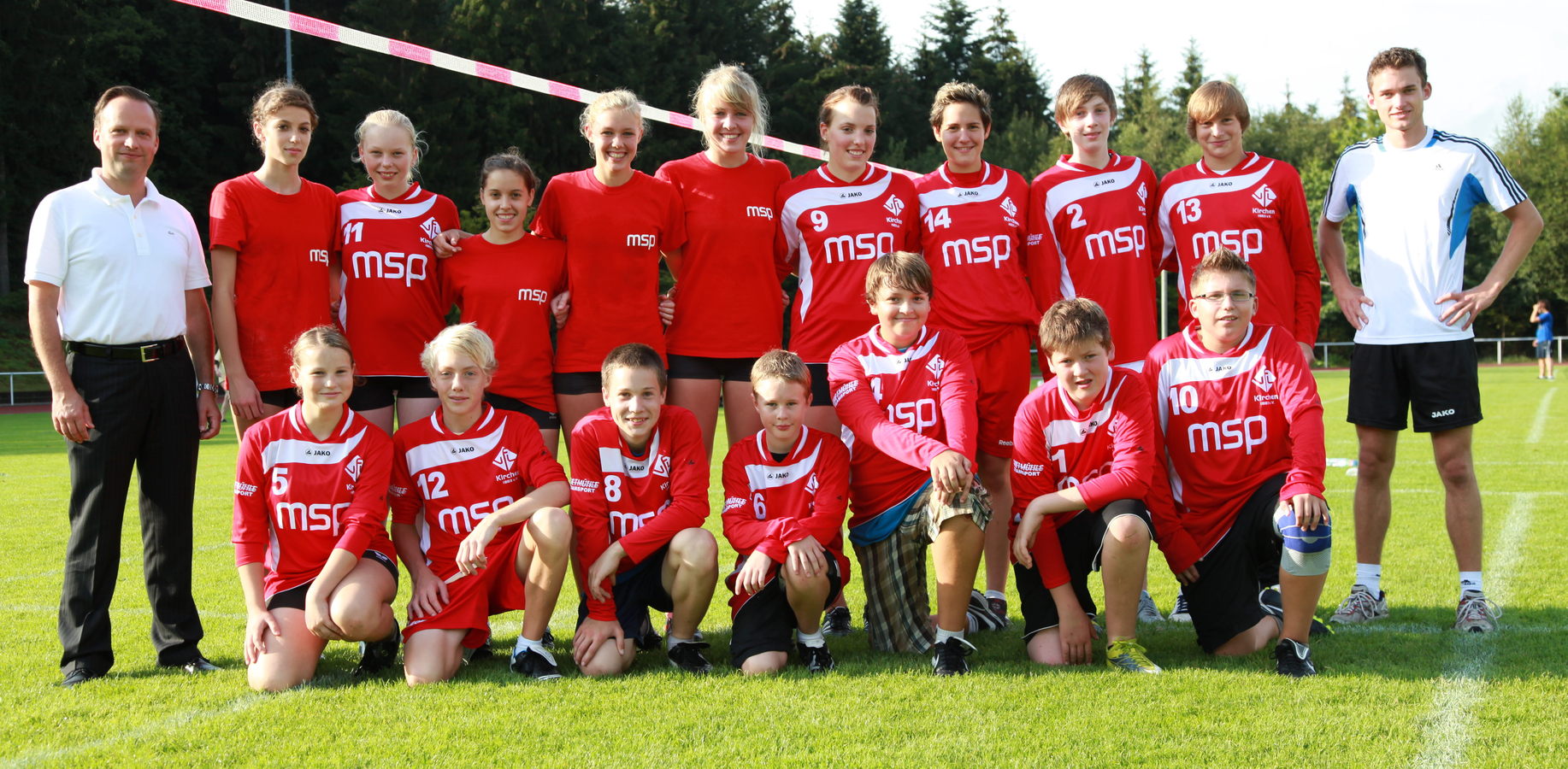 v.l.: Herr Rüdiger Frankenberger (MSP Druck und Medien GmbH), weibl. U18 und männl. U14, Trainer Sören Ebel