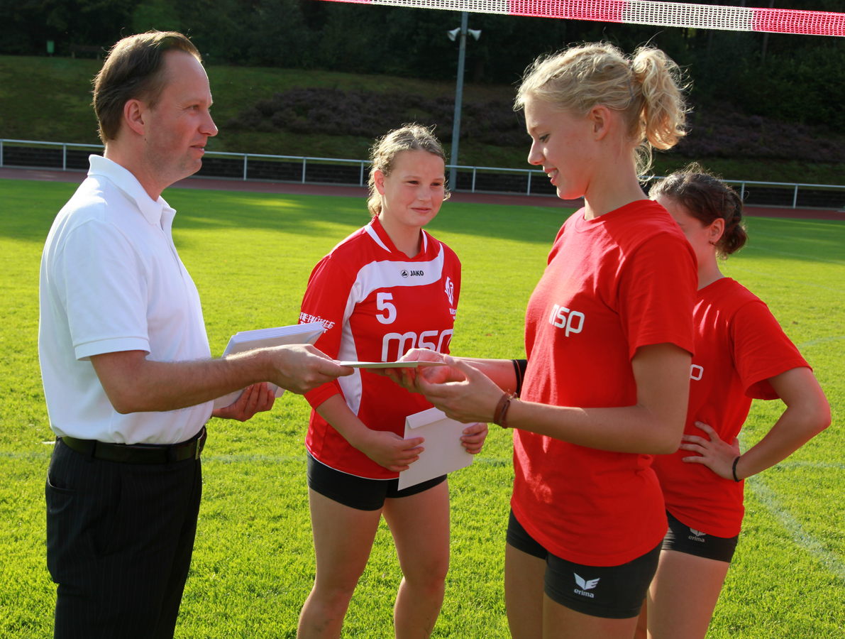 Herr Frankenberger von der Firma MSP hatte den erfolgreichen Spielern ein Präsent für die tollen Leistungen der vergangenen Wochen mitgebracht