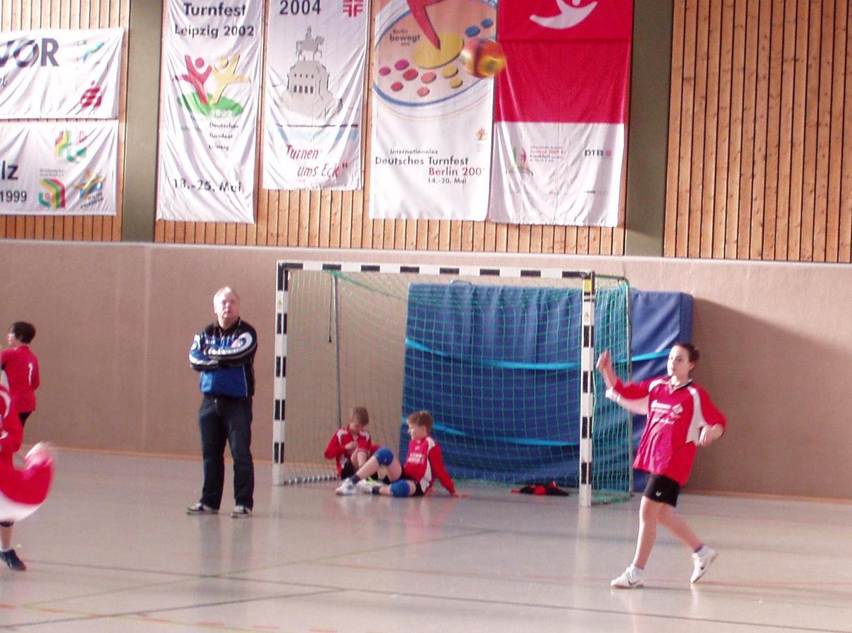 Trainer Rolf Ludwig beobachtet den Abwehrschlag von Lea Döring