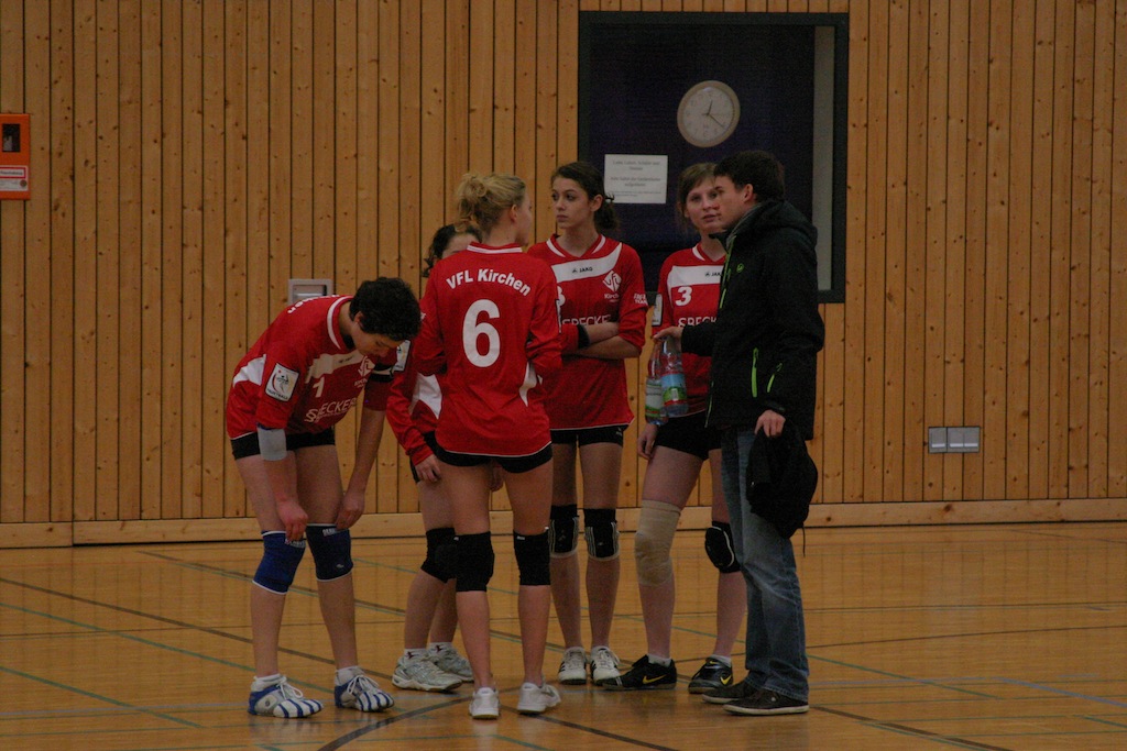 Mannschaftsbesprechung in der Satzpause