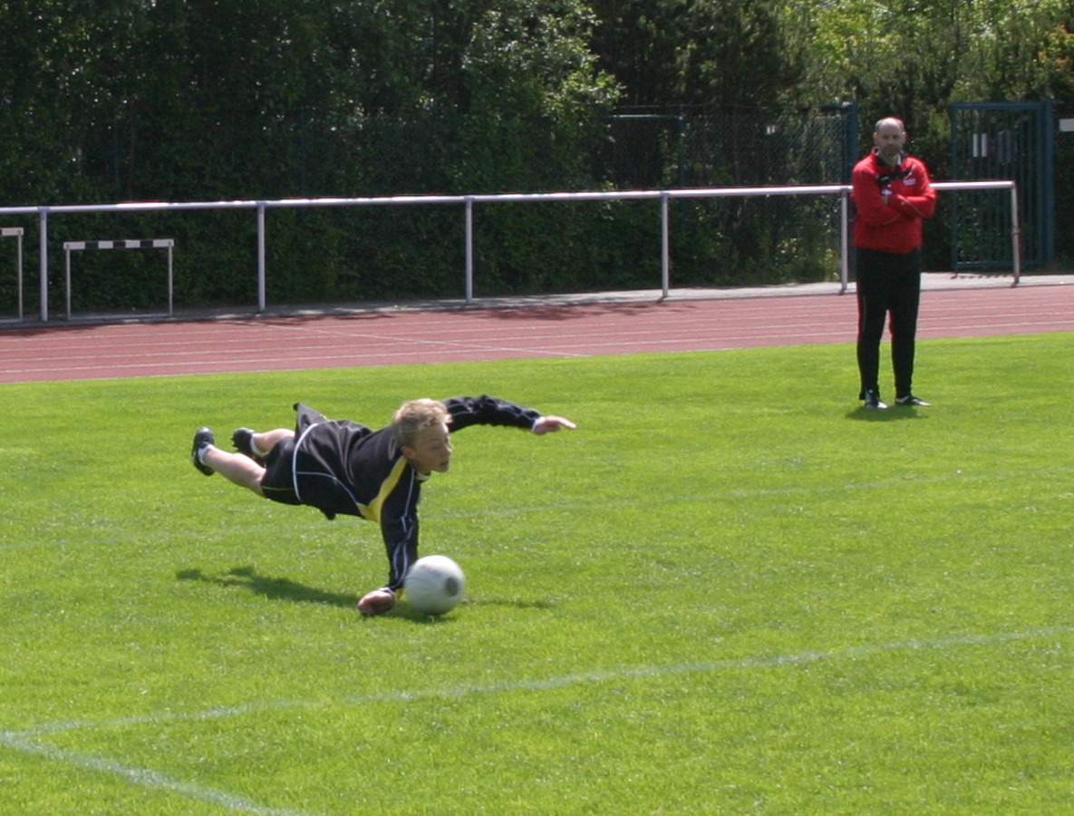 Der VfL Hintermann kratzt den Ball vom Rasen