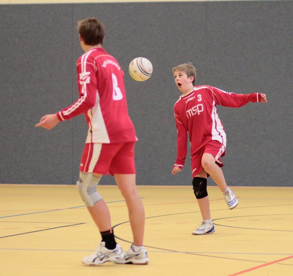 Abwehrspieler Niko Thiel hält den Ball im Spiel