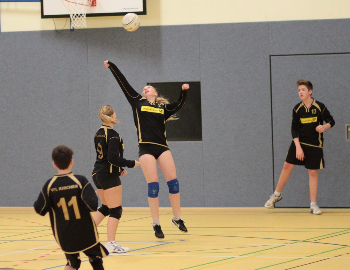 Da muss sich die Abwehrspielerin ganz schön strecken um den Ball noch zu erreichen