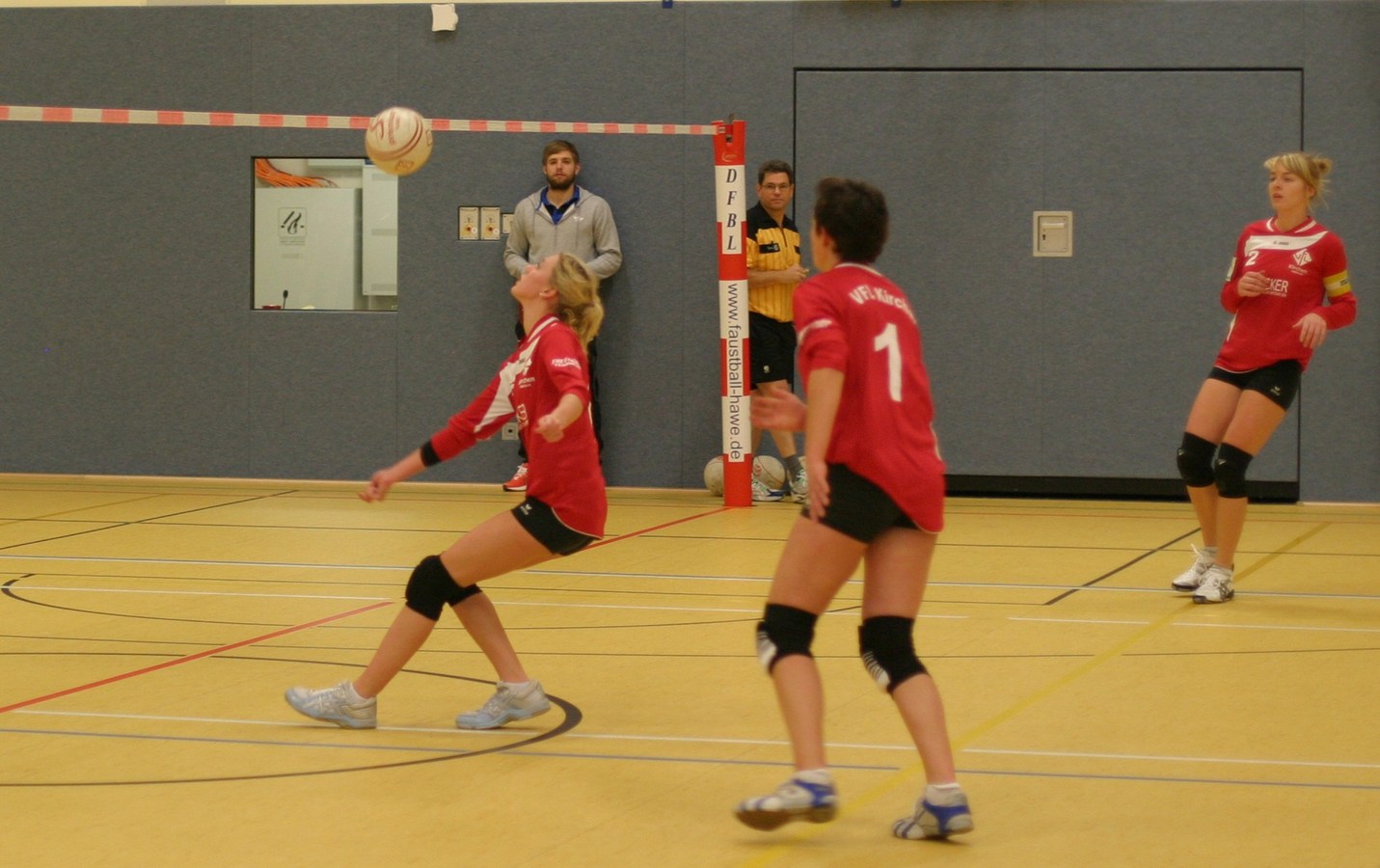 Die Zuspielerin des VfL stellt den Ball zum Schussspiel