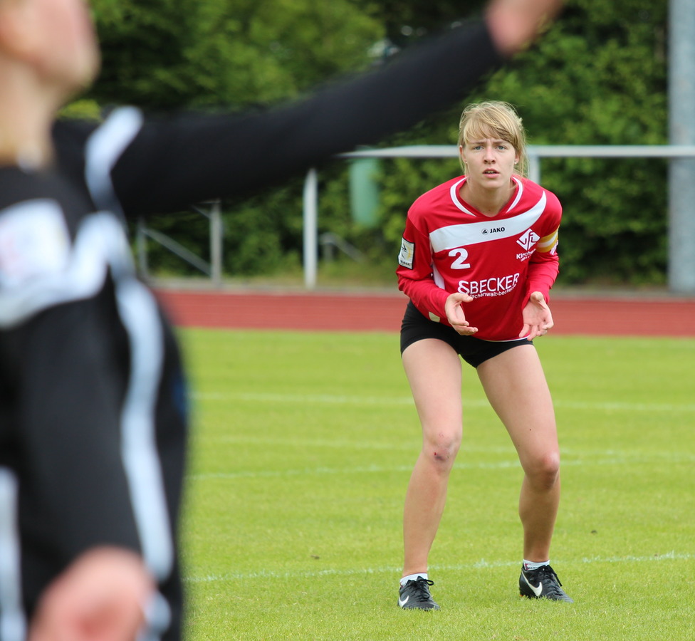 In Erwartung der Angabe schaut die VfL Spielführerin gespannt auf den Ball