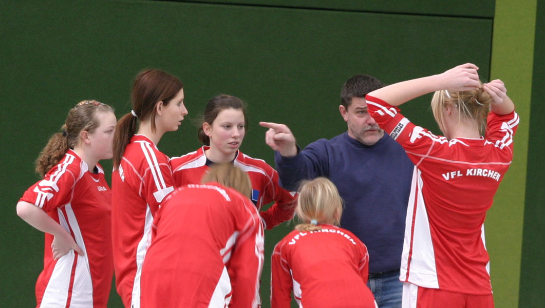 Betreuer Stephan Schiep schwört das VfL-Team ein